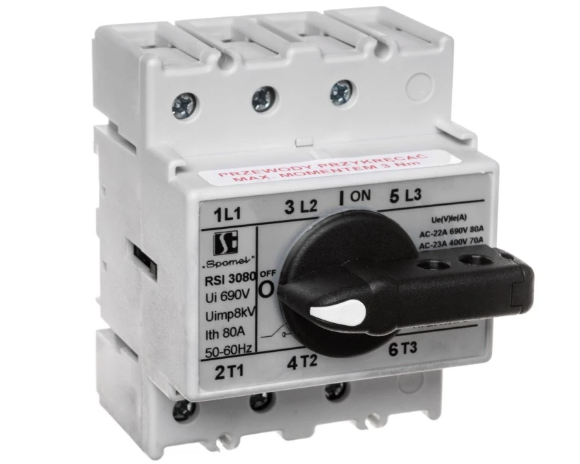 15. Rozłącznik izolacyjny 3P 80A z pokrętłem na rozłączniku czarnym RSI-3080W02 231.50