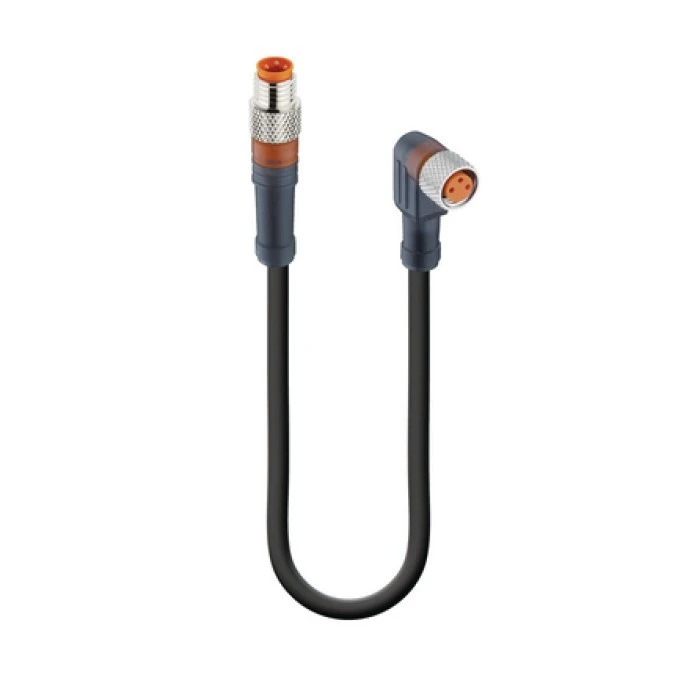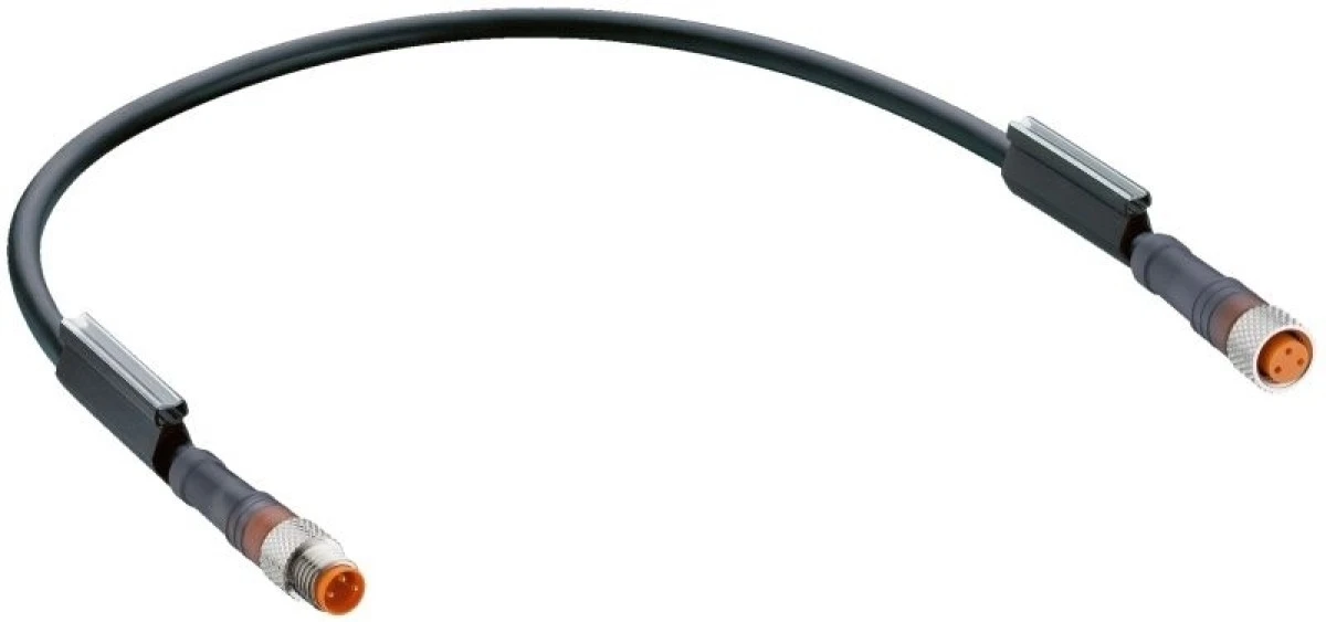 2. RSMV 3-RKMWV 3-224/2 M, złącze M8 męskie 3 stykowe proste + złącze M8 3 stykowe żeńskie kątowe, przewód PUR 3x0,34mm2, dł. 1m, L 75.77