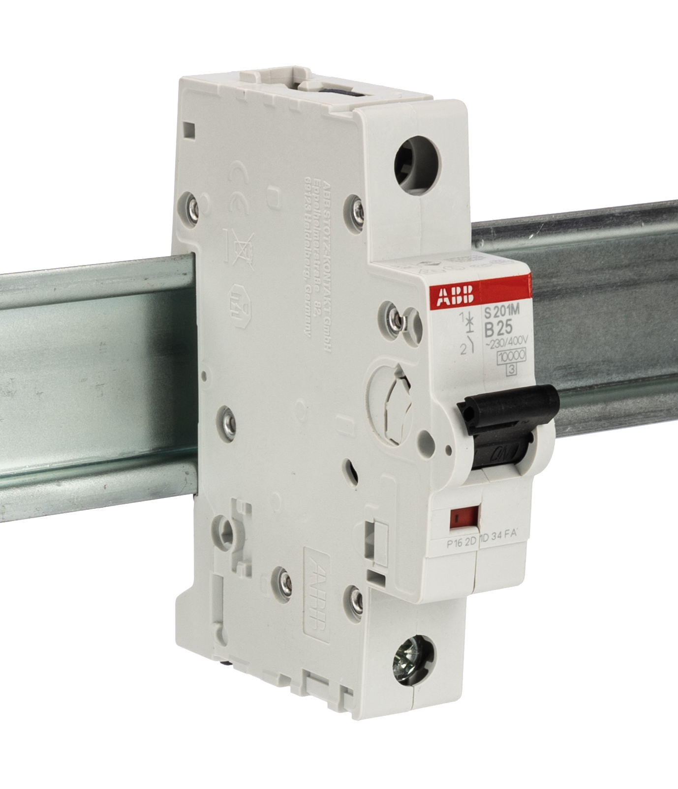 6. Wyłącznik nadprądowy MCB, Typ B, 1-biegunowy, 25A, 253V, 72V, na szynę DIN, ABB S201M-B25, S200M 118.73