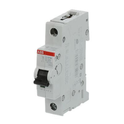 Wyłącznik nadprądowy MCB, Typ D, 1-biegunowy, 20A, 230V, 72V, na szynę DIN, ABB S201M-D20, S200M