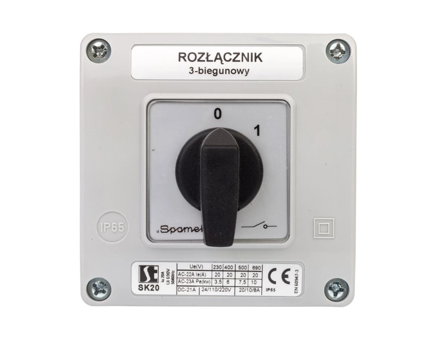 3. Łącznik krzywkowy 0-1 3P 20A w obudowie SK20-2.8211OB11 107.23