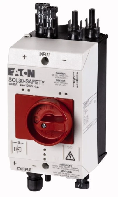 Rozłącznik przeciwpożarowy do fotowoltaiki PV SOL30-SAFETY na 3 stringi MC4 230VAC SOL30X3-SAFETY-MC4-U 168100 EATON