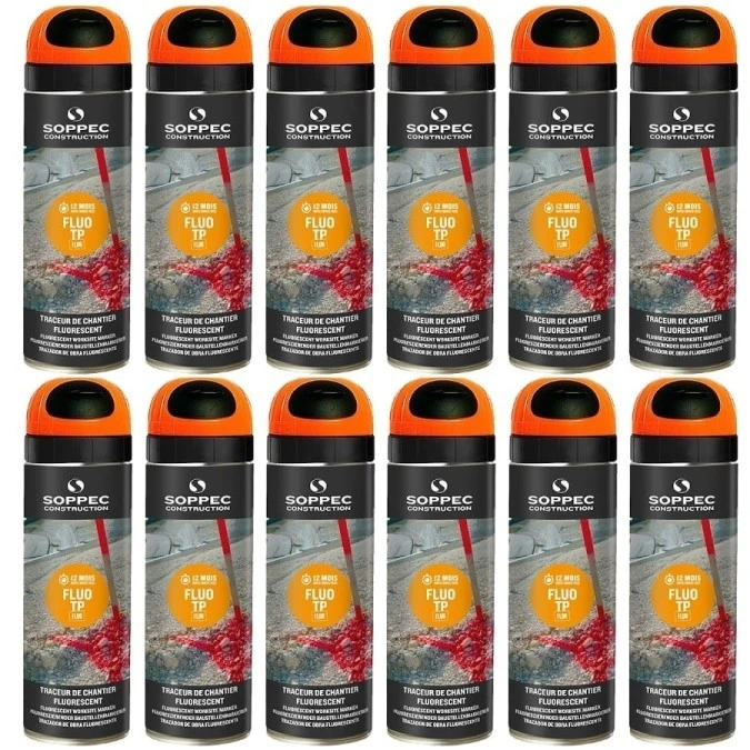Farba geodezyjna do znakowania spray pomarańczowa 12 sztuk SOPPEC Fluo T.P.