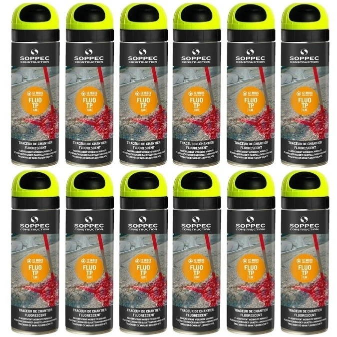 Farba geodezyjna do znakowania spray żółta 12 sztuk SOPPEC Fluo T.P.