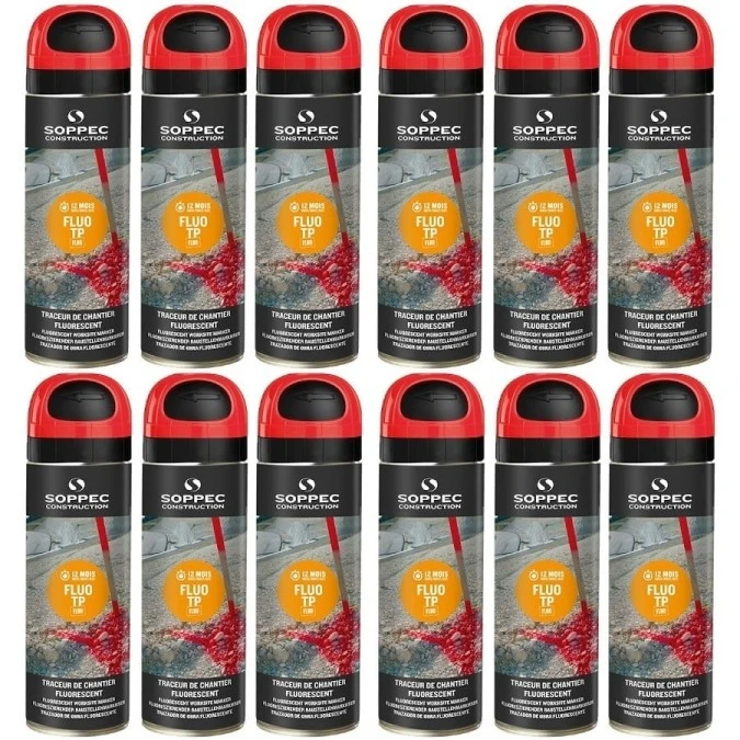 Farba geodezyjna do znakowania spray czerwona 12 sztuk SOPPEC Fluo T.P.
