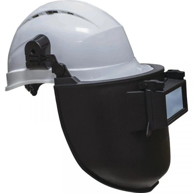 15. Tarcza spawalnicza do mocowana do hełmu budowlanego z podnoszoną szybką filtry w zestawie (przeźroczysty i din 11) kolor czarny 123.27
