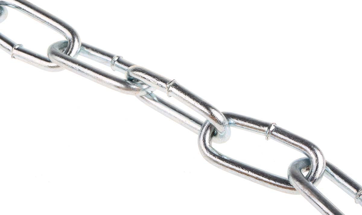 Łańcuch średnica połączenia 5mm dł. połączenia 21mm RS PRO długość 10m galwanizowany Stal