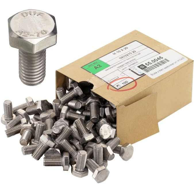 Śruba sześciokątna M10x20mm nierdzewna DIN 933 /opakowanie 100szt./