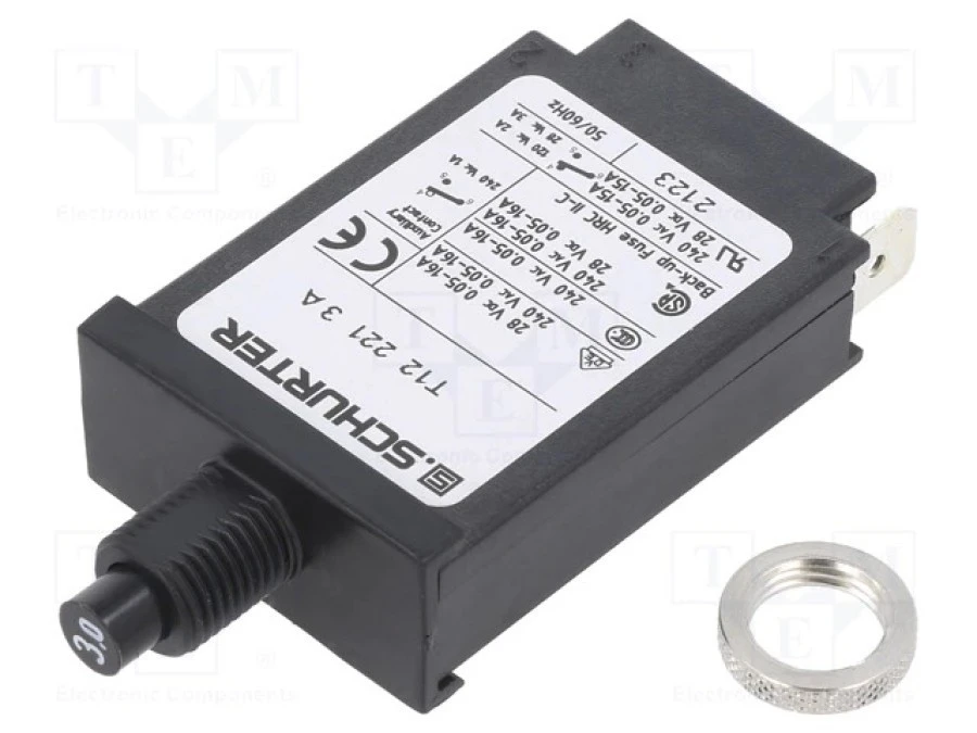 T12-221-3 Wyłącznik nadprądowy Iznam: 3A Uznam: 240VAC 28VDC SPST Bieguny: 1