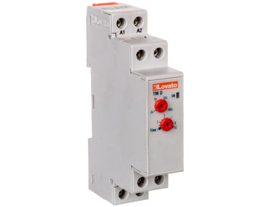 3. Przekaźnik czasowy (0,06s - 180s) 24-240V 5A z opóźnionym odpadaniem 1-modułowy TMD LOVATO 235.00