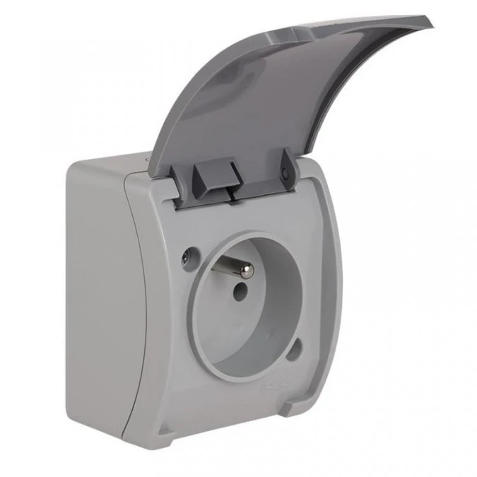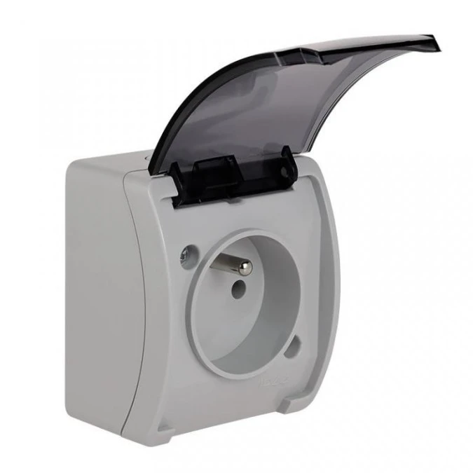 Koala Gniazdo pojedyncze z/u (2P+Z) n/t IP44 popiel z klapką grafit VG 161-08 61.375