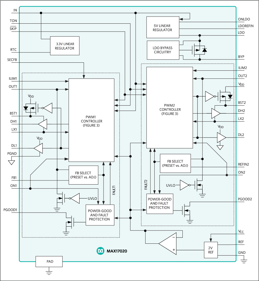 12. Dual Quick-PWM, Step-Down Controller with Low-Power LDO, RTC Regulator Sample