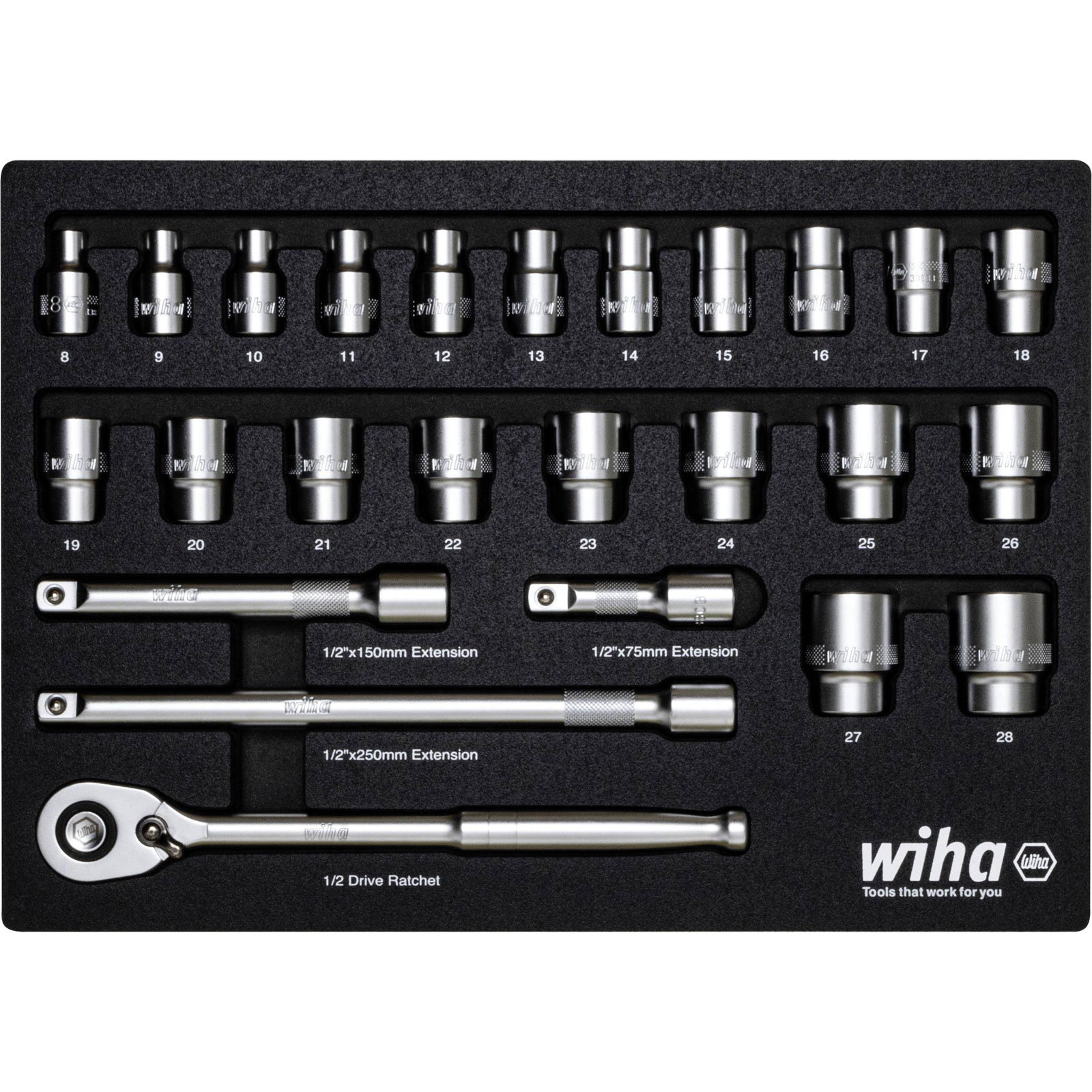 Wiha 44740 Ratchet Wrench Set 1/2" 25pc