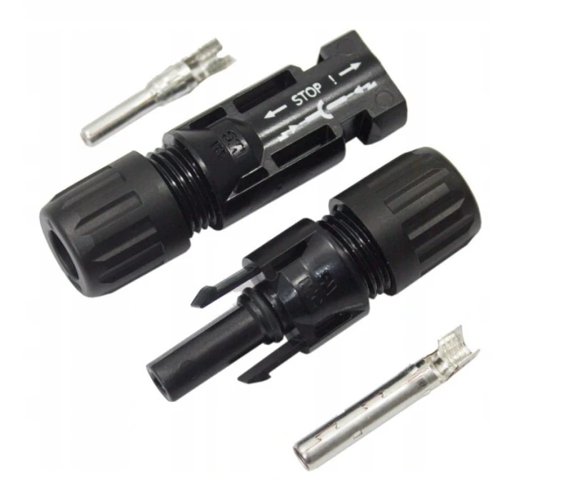 2. Złącze fotowoltaiczne MC4 komplekt para (+ i -) szeregowe zestaw DC 1000V 32A VCX 4.65