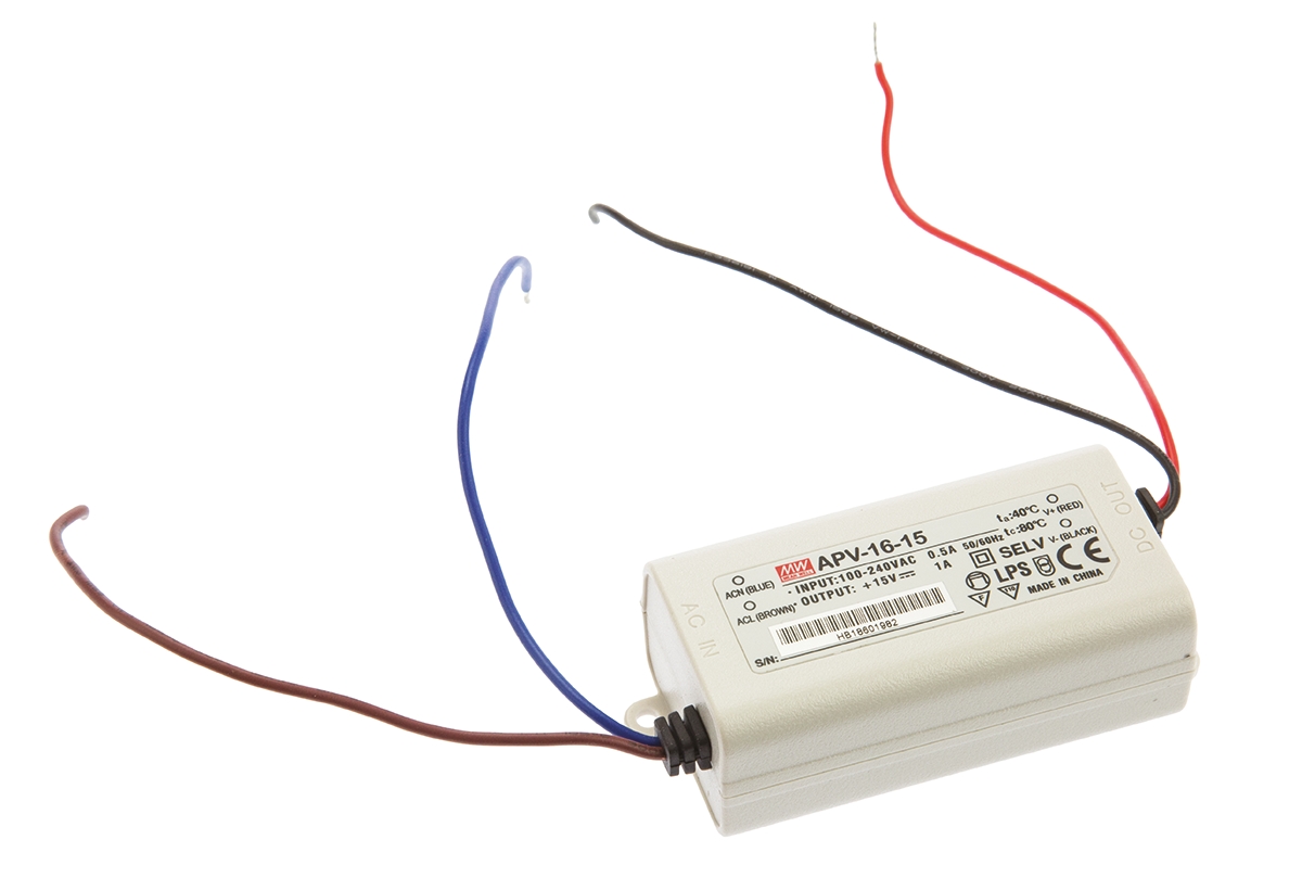 Sterownik LED napięcie wyjciowe: 12V 1.5A napięcie wejściowe: 180 - 264 V AC stabilizowany napięciowo 18W RS PRO