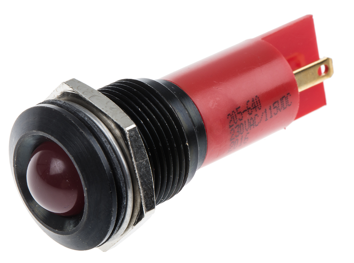 15. Lampka kontrolna do montażu panelowego 115 V dc, 230V ac, czerwona 16mm LED Końcówka lutownicza RS PRO 101.65