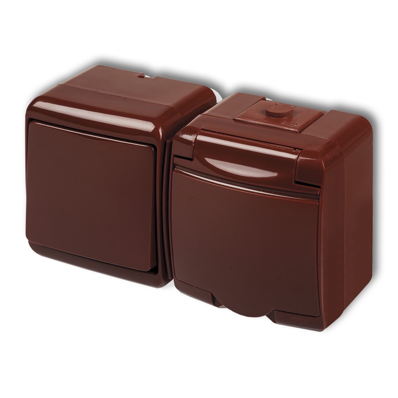 2. JUNIOR Łącznik natynkowy jednobiegunowy z gniazdem hermetycznym poziomy brązowy 4WGHH-1 30.63