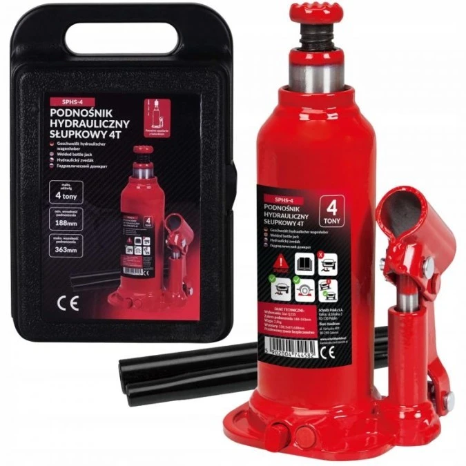 Podnośnik samochodowy hydrauliczny butelkowy słupkowy lewarek do 4 ton Schmith