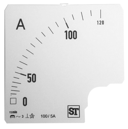 Podziałka analogowego amperomierza, 120A, do użytku z: Panelowy amperomierz analogowy 96 x 96