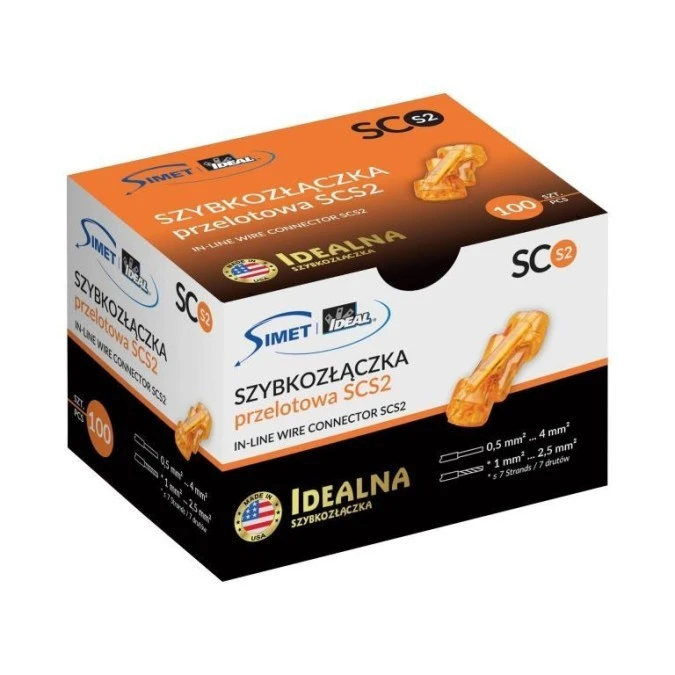 9. IDEALNA Szybkozłączka przelotowa 2x 0,5-4mm2 uniwersalna bezhalogenowa (na drut / na linkę) 450V/32A SIMET 100szt. 225.89