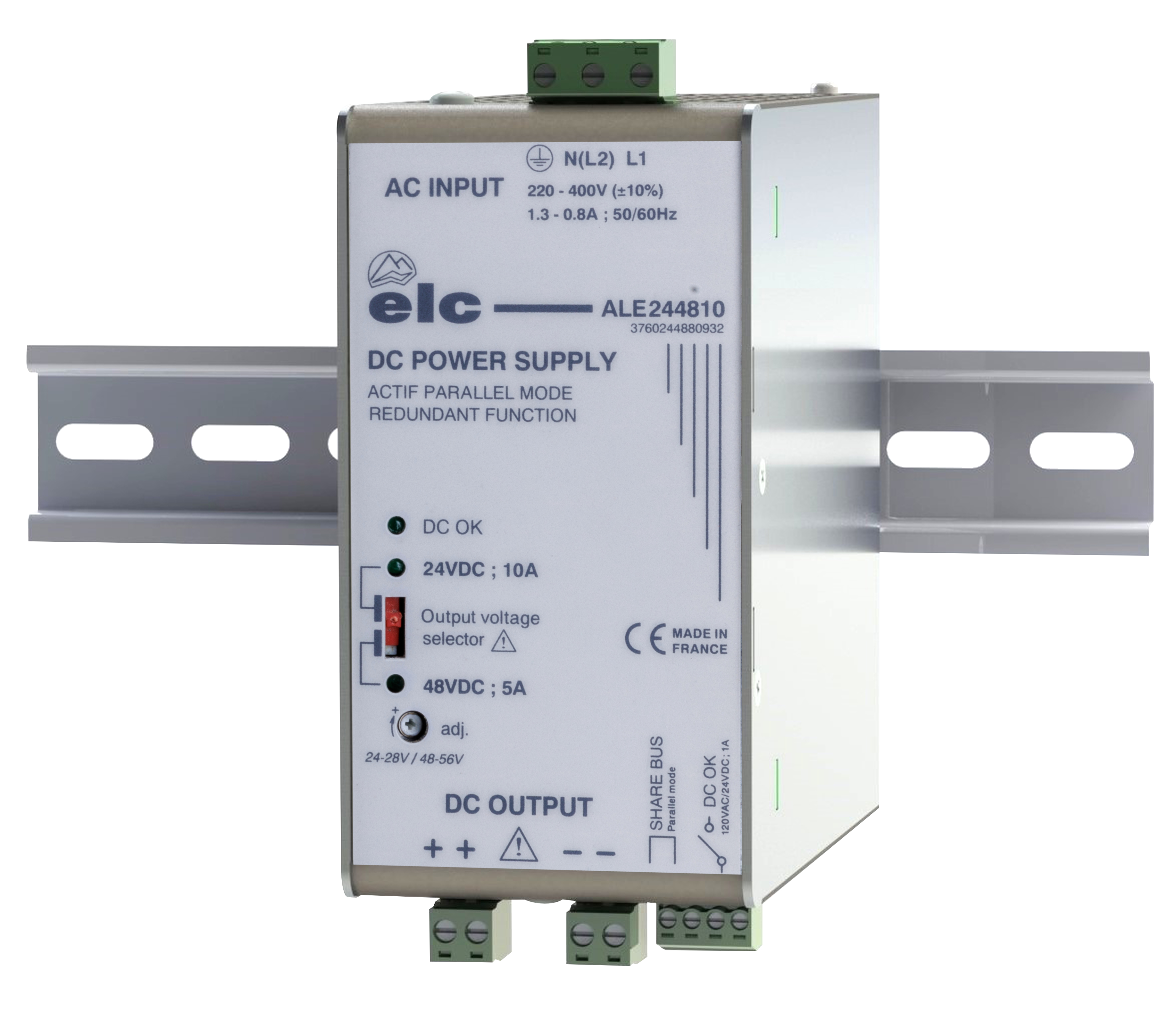 Zasilacz szyny DIN U wy 24 → 48V dc I wy 10A U we 230V → 440V ac ELC 240W -25 °C → +70 °C Zasilacz liniowy