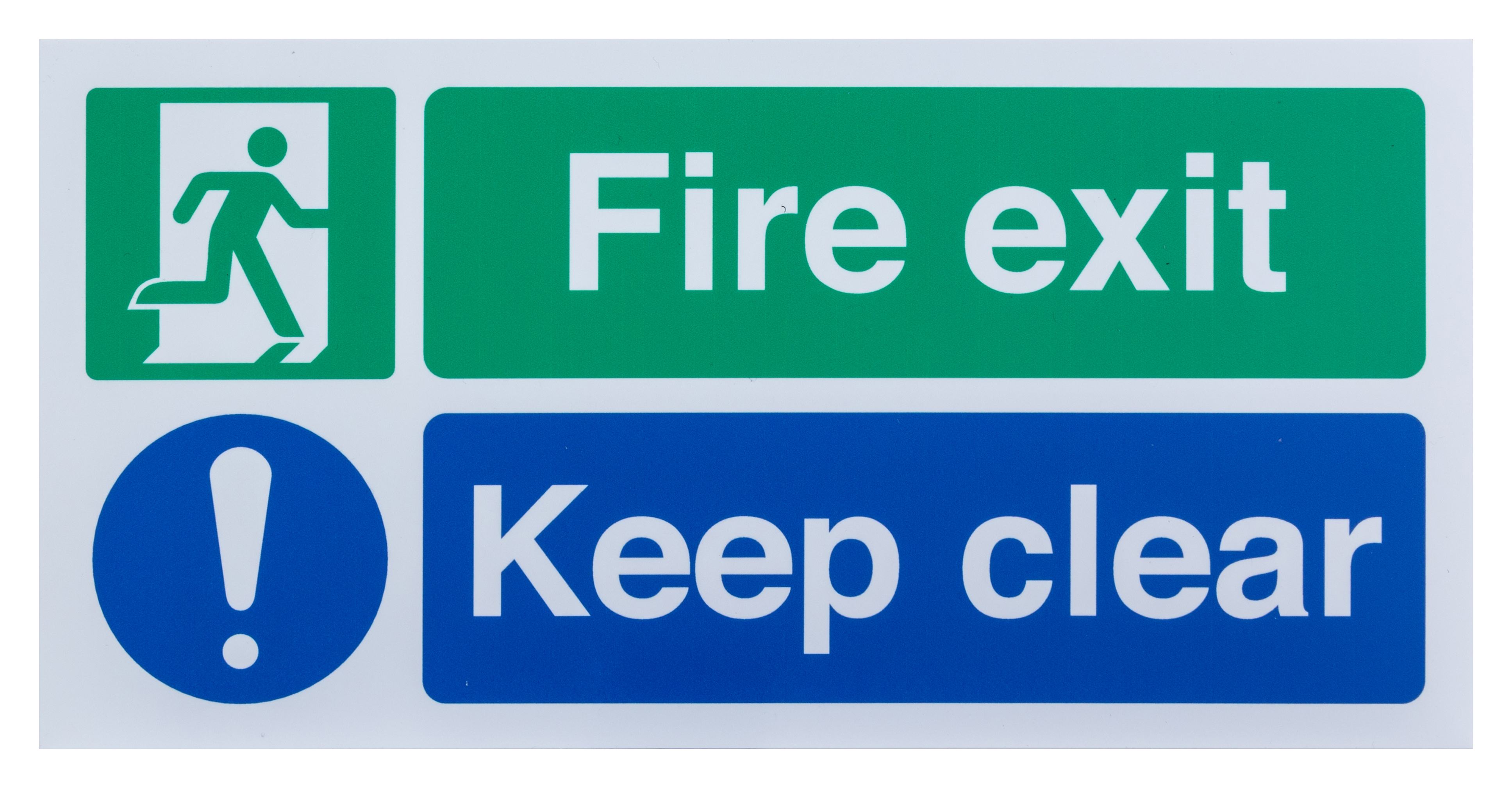 6. Znak wyjścia, Polipropylenowe, Niebieski/zielony/biały, Fire Exit, Keep Clear, Angielski, Opis: Nie zastawiać 92.53