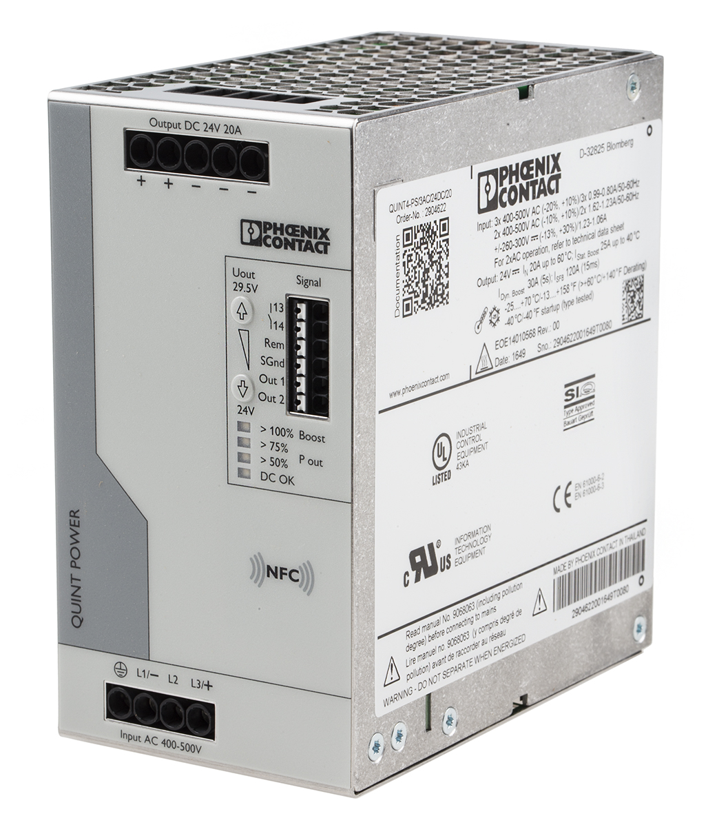 Zasilacz szyny DIN U wy 24V dc I wy 20A U we 400V ac Phoenix Contact 480W impulsowy