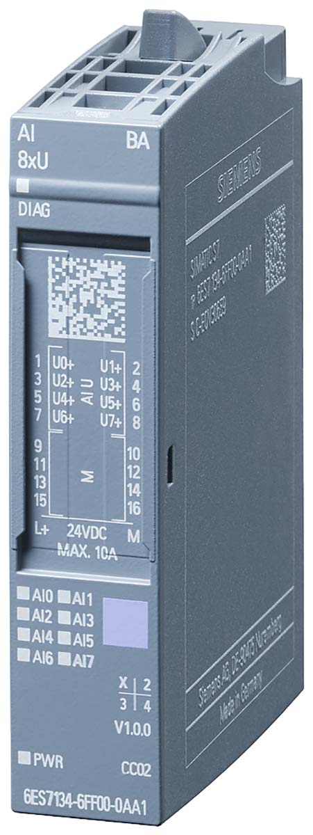 Moduł wejścia Siemens Moduł wejścia ET 200SP Typ BU A0, A1 6ES7134-6FF00-0AA1 73 x 15 x 58 mm