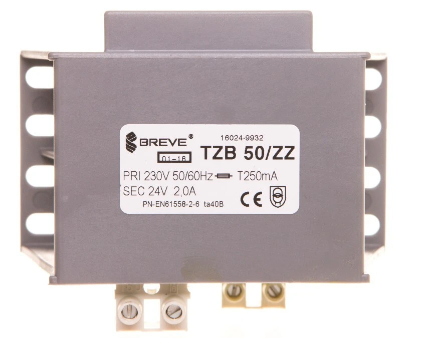 1. Transformator; z mocowaniem; TZB50/ZZ 230/24V; 230V; 24V; 2,08A; 50VA; śrubowe; Breve 110.17