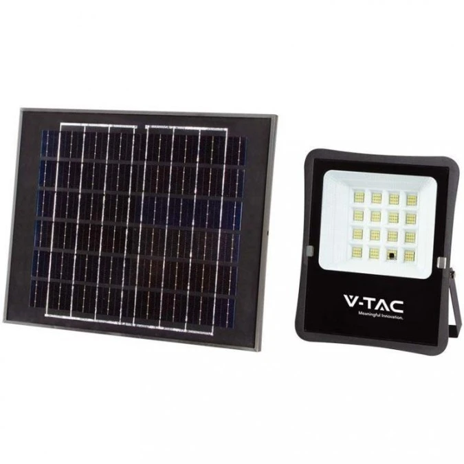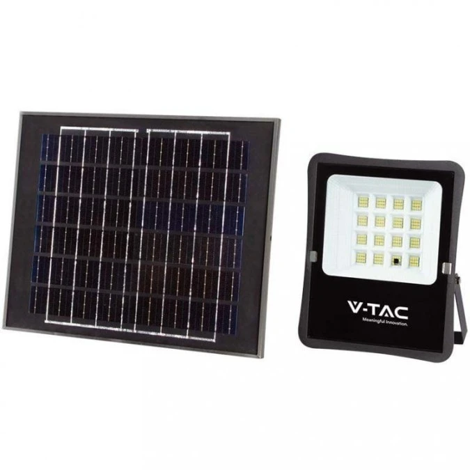 Naświetlacz LED SMD 12W 1200lm 4000K 10000mAh IP65 czarny barwa NW biała neutralna z panelem solarnym VT-55100 V-TAC