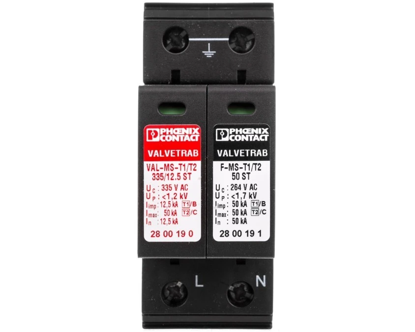 Ogranicznik przepięć Typ T1+T2 Typ T1+T2 12,5kA 1,2kV 240V AC VAL-MS-T1/T2 335/12.5/1+1 2800187