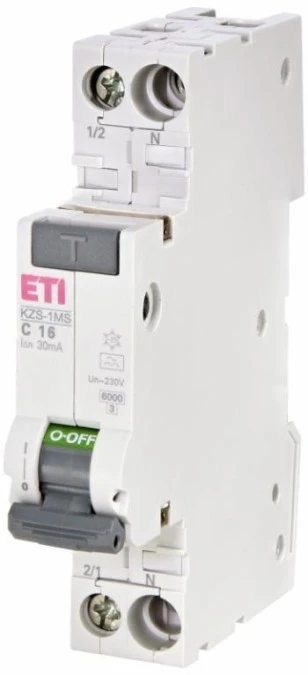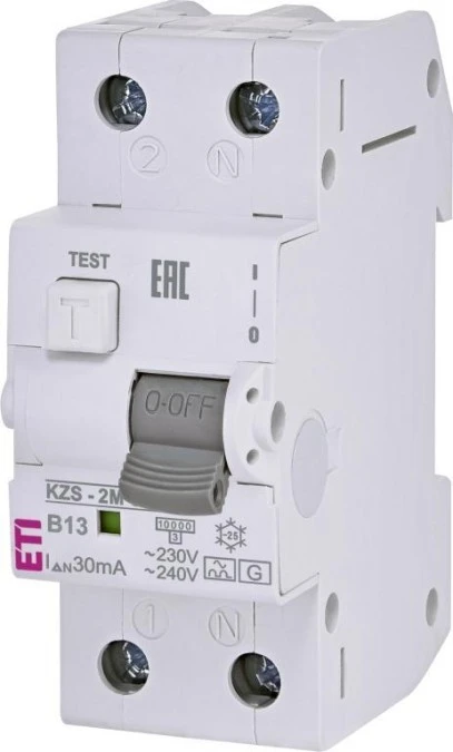 Wyłącznik różnicowoprądowy z zabezpieczeniem nadprądowym o działaniu niezależnym od napięcia sieci KZS-1MS 1p+N A B13/0.03 00217