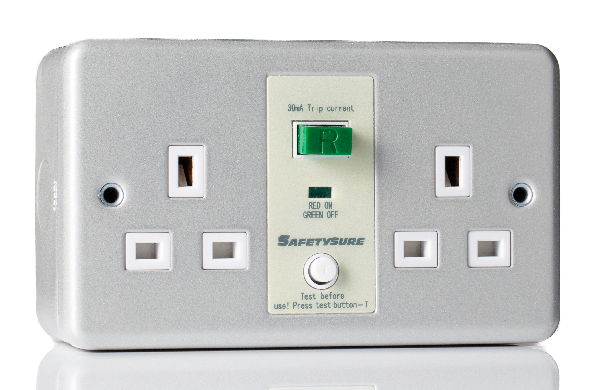 9. Gniazdo z wyłącznikiem różnicowoprądowym, 13A, BS 1363, BS 7288, l. ścieżek: 2, Pasywny, 30mA, Montaż powierzchniowy, 358.74