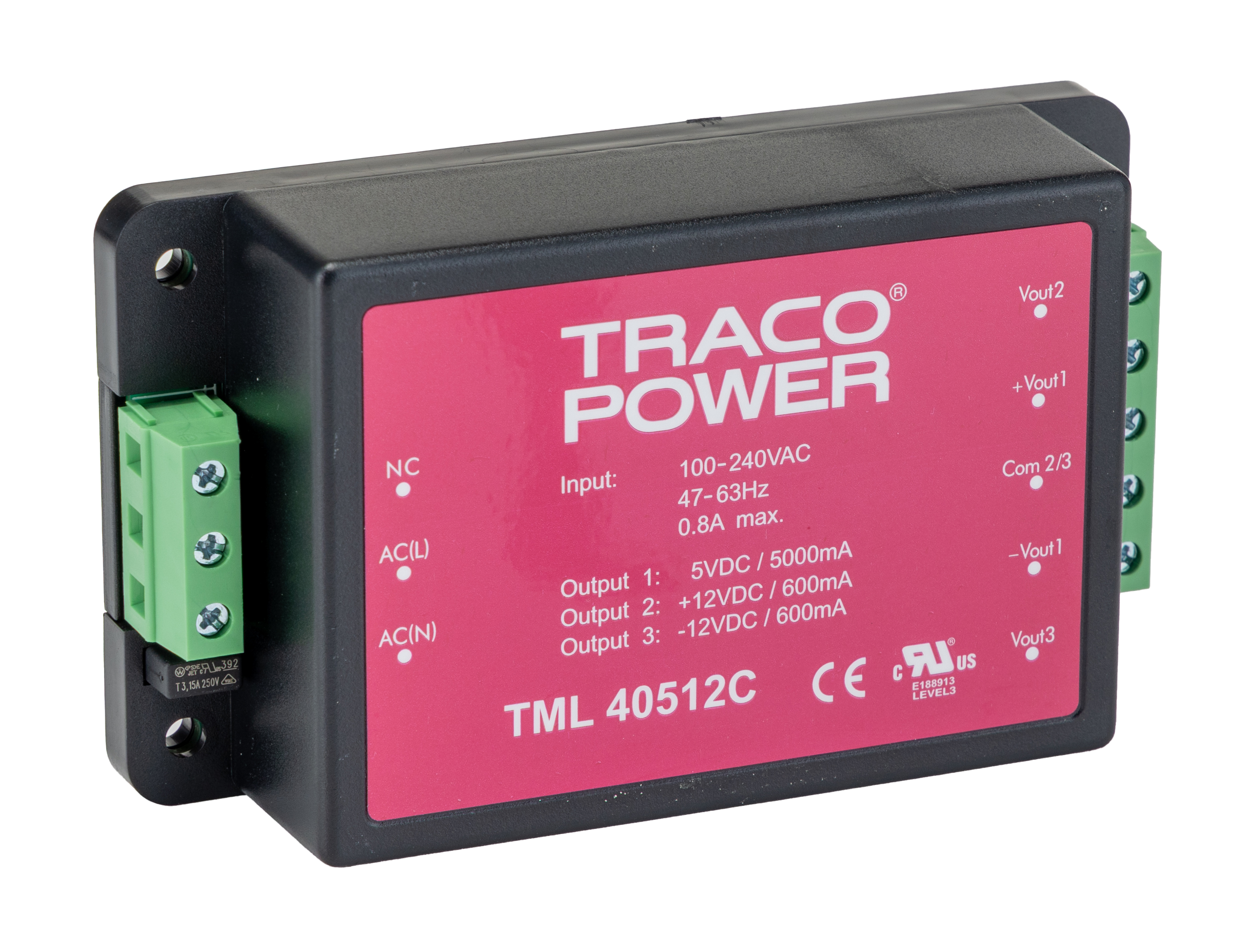 Zasilacz impulsowy nap. wyjściowe: 5 V dc, ±12 V dc 40W 5 A, 600mA 3 -wyjścia nap. wejściowe: 100 → 375 V dc, 90