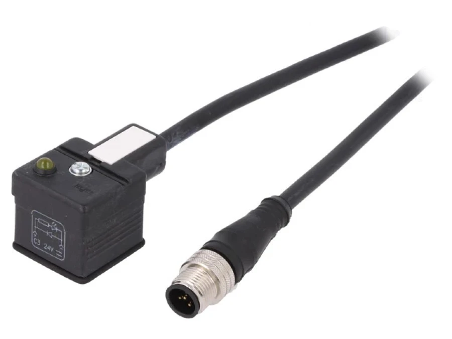 Przewód czujnik-siłownik ze złączem Złącze M12 długość 600mm Rodzaj A Męskie Złącze B DIN 43650 Form C