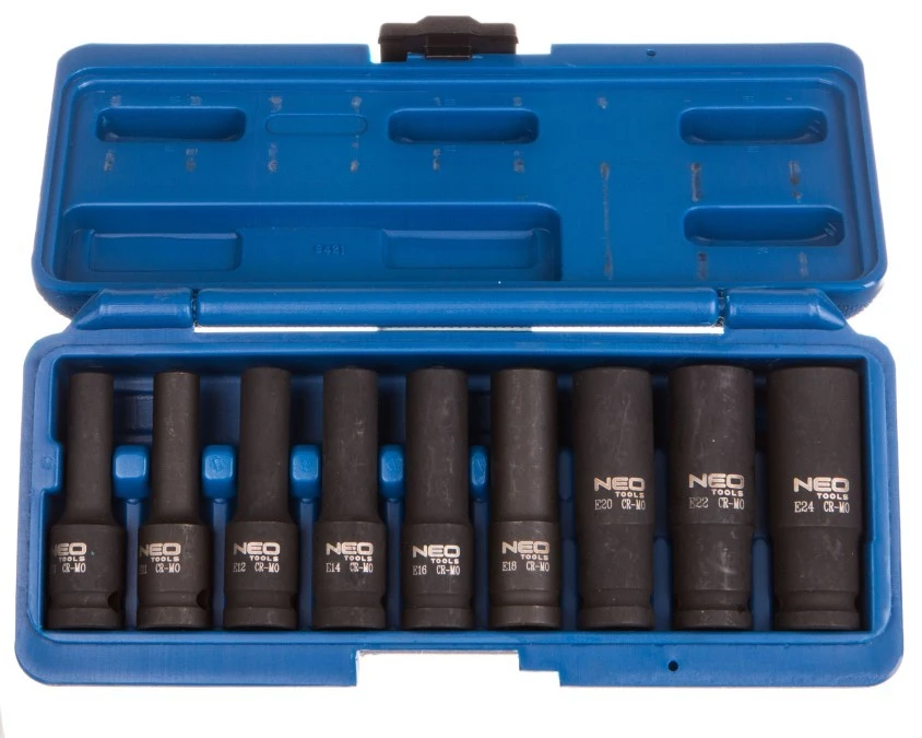 Nasadki udarowe 1/2cala E10-E24 zestaw 9 elementów CrMo 12-110