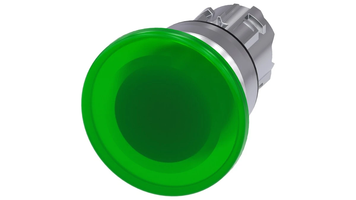 Przycisk grzybkowy podświetlany 22mm okrągły metal błyszczący zielony 40mm z samopowrotem 3SU1051-1BD40-0AA0