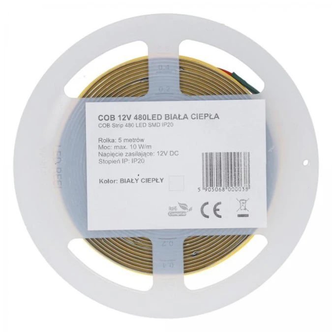8. Taśma 320x LED COB 2835 W/mb biała zimna IP20 12V op=5m 93.76