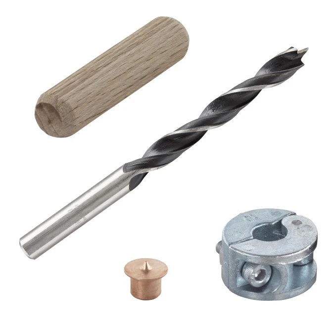 4. ZESTAW: WIERTŁO, OGRANICZNIK GŁĘB. 4 ZNACZNIKI KOŁKI 6MM 28.66