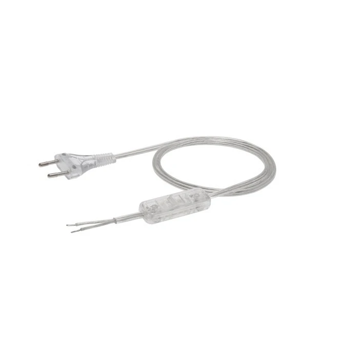 1. Przewód z wyłącznikiem z płaską wtyczką b/u H03VVH2-F 2x0,5 transparentny S-13W-0,5-2-0 /2m/ 19.84