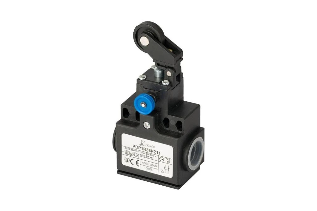 Wyłącznik krańcowy 1R 1Z migowy popychacz stalowy i dźwignia z rolką z tworzywa Ø22 z resetem PDP1R38PZ11 A37-6R50