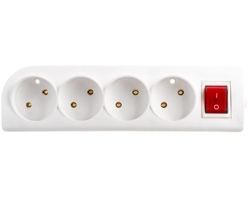 Gniazdo przedłużacza x 4 z uziemieniem i wyłącznikiem białe GN-40W