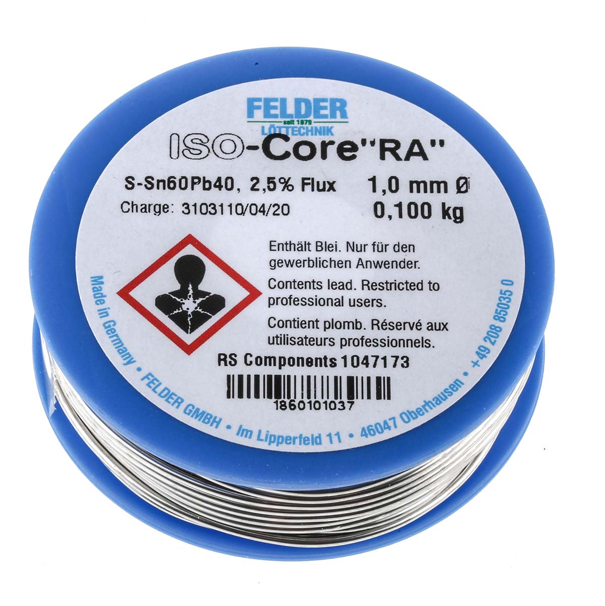 9. Lutowie z ołowiem średnica 1mm Felder Lottechnik 40% Pb temp. topnienia 183°C 100g 60% Zn 90.65