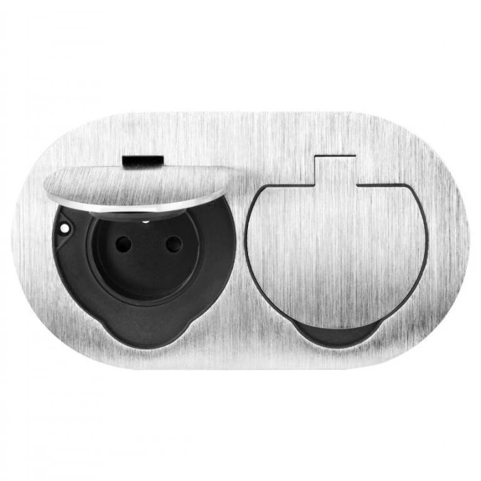 Hermetyczne gniazdo elektryczne podwójne, owalne, IP55, srebrne,OR-GM-9046/G