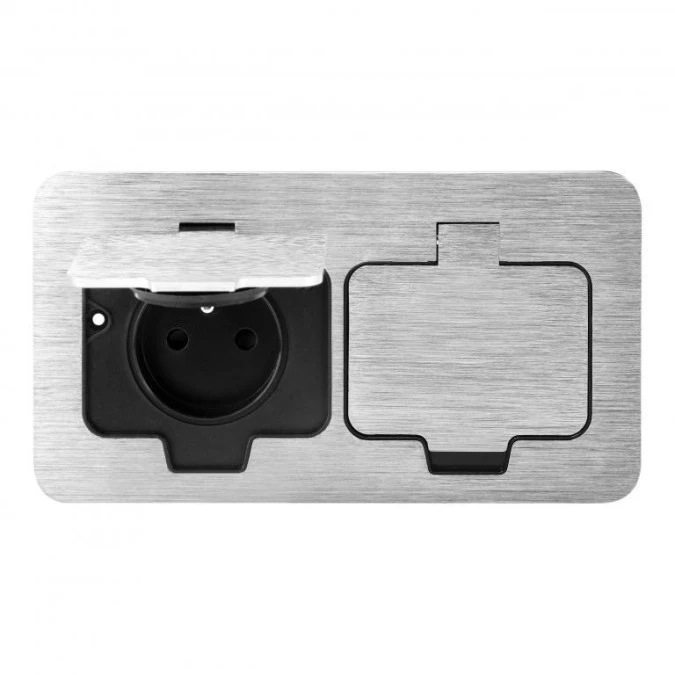 Hermetyczne gniazdo elektryczne podwójne, prostokątne, IP55, srebrne,OR-GM-9047/G