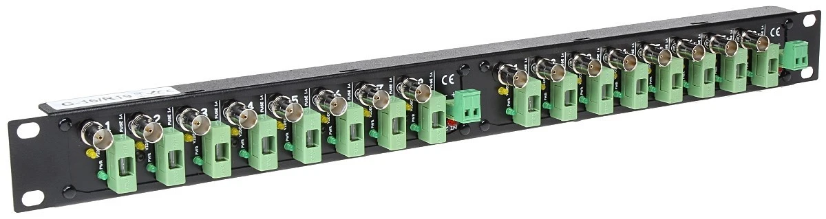 Gniazdo dystrybucyjne 2x8x BNC video 16x DC zasilanie 1A/250V, 5/20mm, zwłoczne G-16/R19 Rack 19”