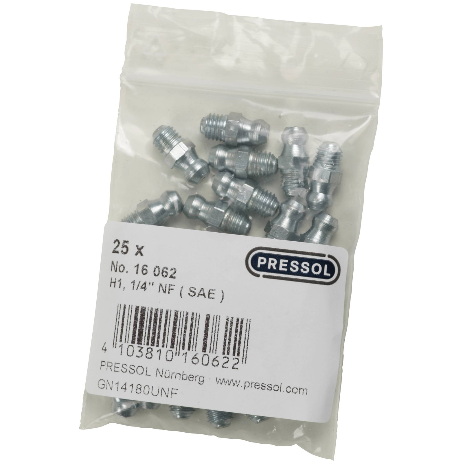 13. Pressol 16 062 Tapered Lubricating Nipple H1-Straight 1/4"-UNF 25 pcs 32.79