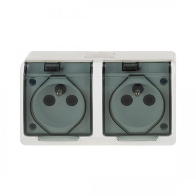 TEKNO Gniazdo hermetyczne podwójne 2x2P+0 z przesłoną styków 16A 250V biały IP54 33497