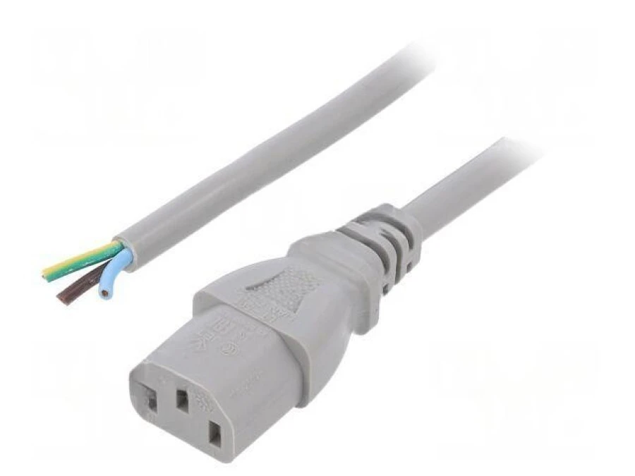 Kabel: 3x1mm2, IEC C13 żeński, 1m, 10A, 250V LT-501 H05VV-F 1.0/3C GRY 1M END