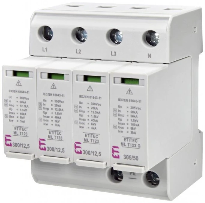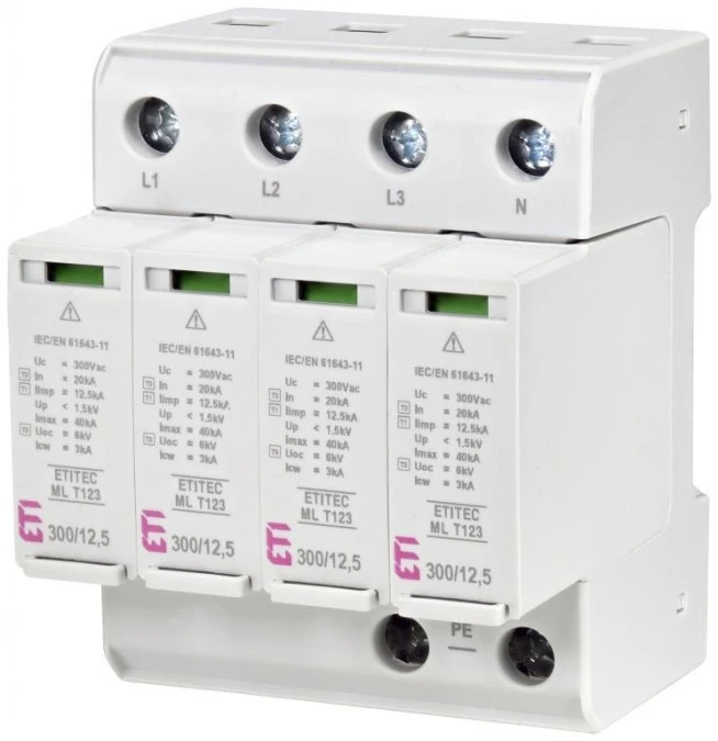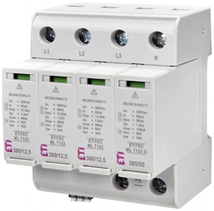 1. Ogranicznik przepięć typ T1+T2+T3 (B+C+D) ETITEC ML T123 300/12,5 4+0 uniwersalny TN-S 002440667 492.70